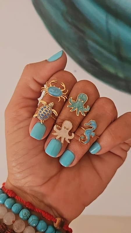 Pulpo Azul, Pulpo Blanco, Tortuga, Cangrejo, Caballito de Mar