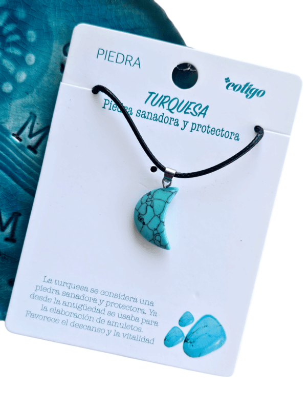 La turquesa es una piedra sanadora muy eficaz que ofrece bienestar al cuerpo y espíritu. Es una piedra protectora que ha sido usada como amuleto desde tiempos remotos. Fomenta la sintonía espiritual y potencia la comunicación con los mundos físico y espiritual.