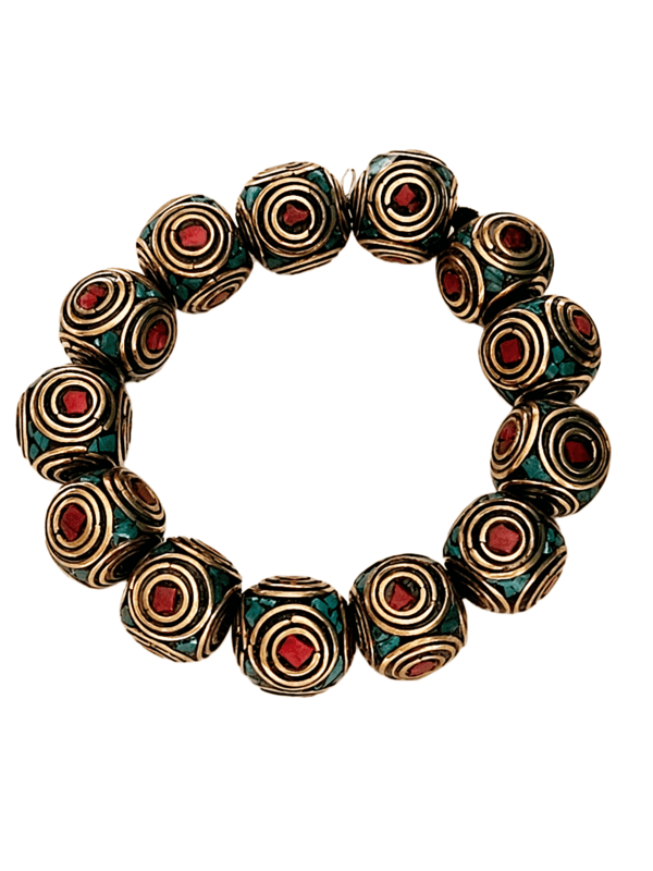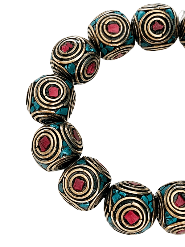 17,95 € Pulsera Mala hecha artesanalmente en Nepal con 17 cuentas de hilos de bronce y turquesa.