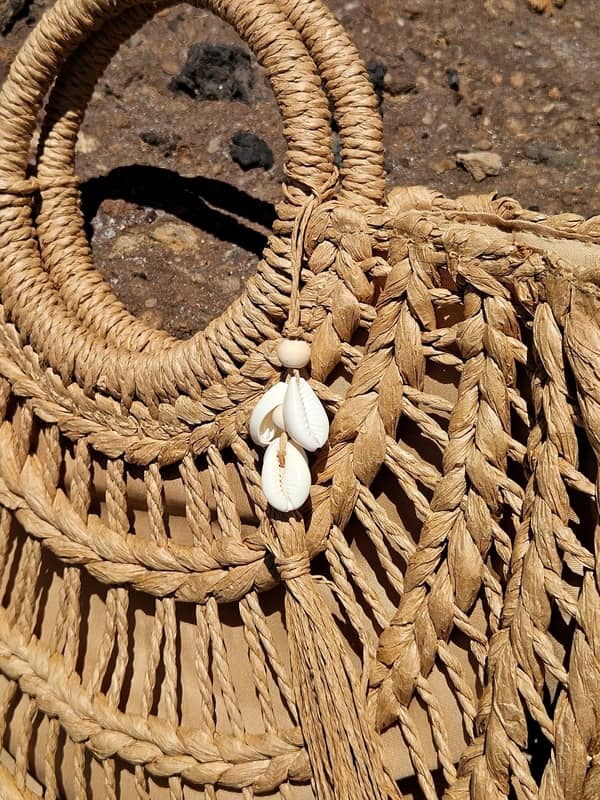 Bolso de Rafia Artesanal con Detalle de Caracolas – Estilo Boho Chic