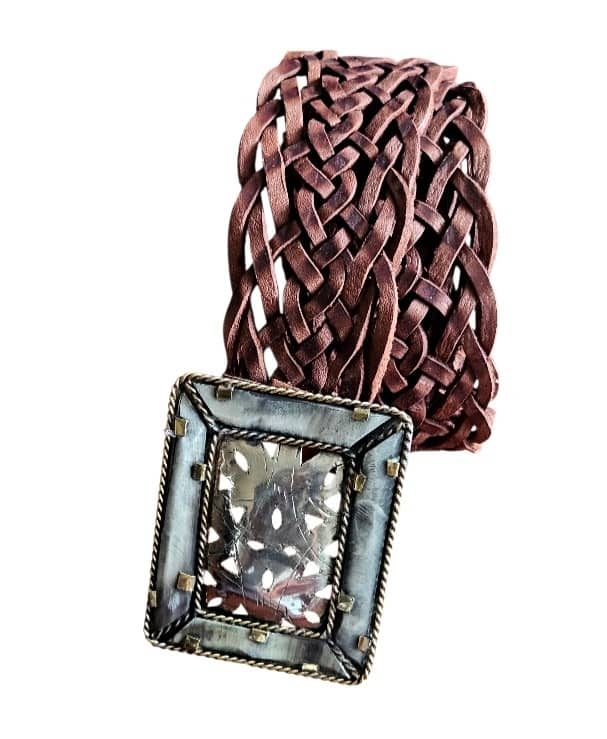 Cinturón de Cuero Trenzado Artesanal de Marruecos con Hebilla Metálica Labrada