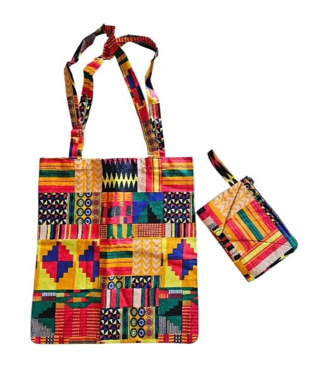 Este conjunto no es solo un accesorio, es una pieza de artesanía con alma. Cada set ha sido cosido con mimo por Fatu y sus hermanas en su pequeño taller de un barrio de Dakar, Senegal. Al utilizar telas Wax (telas africanas de algodón con estampados de cera), garantizamos colores vibrantes que no pierden intensidad y diseños geométricos que cuentan historias.