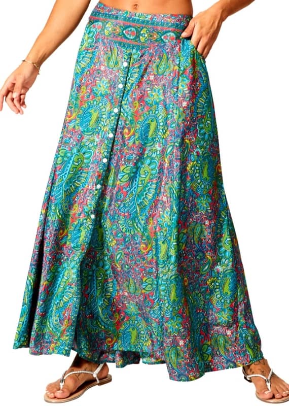 Descubre la comodidad y el diseño único de nuestra falda larga boho para mujer. Esta pieza ha sido fabricada en India, capturando la esencia de la moda étnica en un tejido ligero 100% poliéster, ideal para mantener la frescura y evitar arrugas innecesarias.