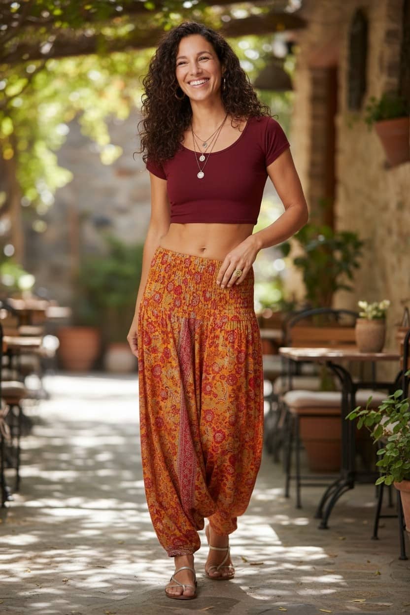 - Como pantalón: Ajustado a la cintura o la cadera para un look bohemio y relajado.